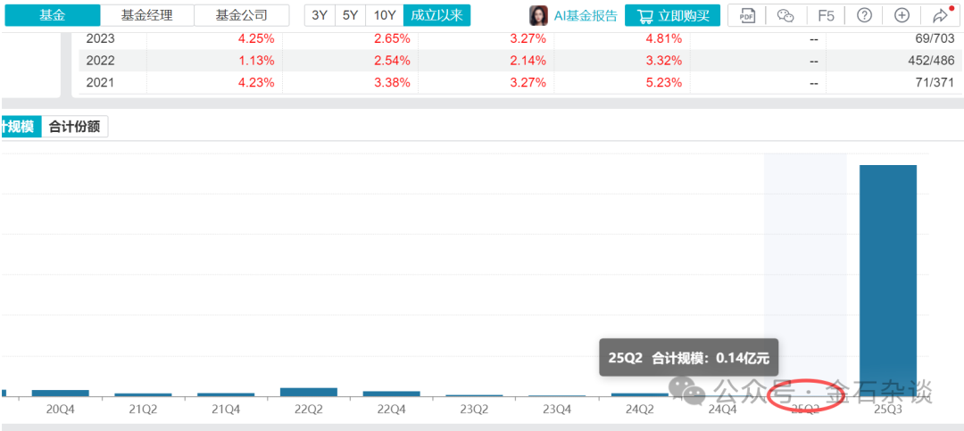 11月9日,公募圈活久见!金石杂谈发现,有一家公募在2025年Q的时候规模还只有不足30亿,如今规模已高达200多亿。第一眼感觉是新的高管班子上任,让这家公募改头换面,但是仔细查询发现,并不是!